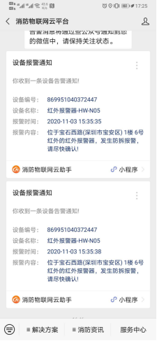⑷ 微信公众号:消防物联网云平台